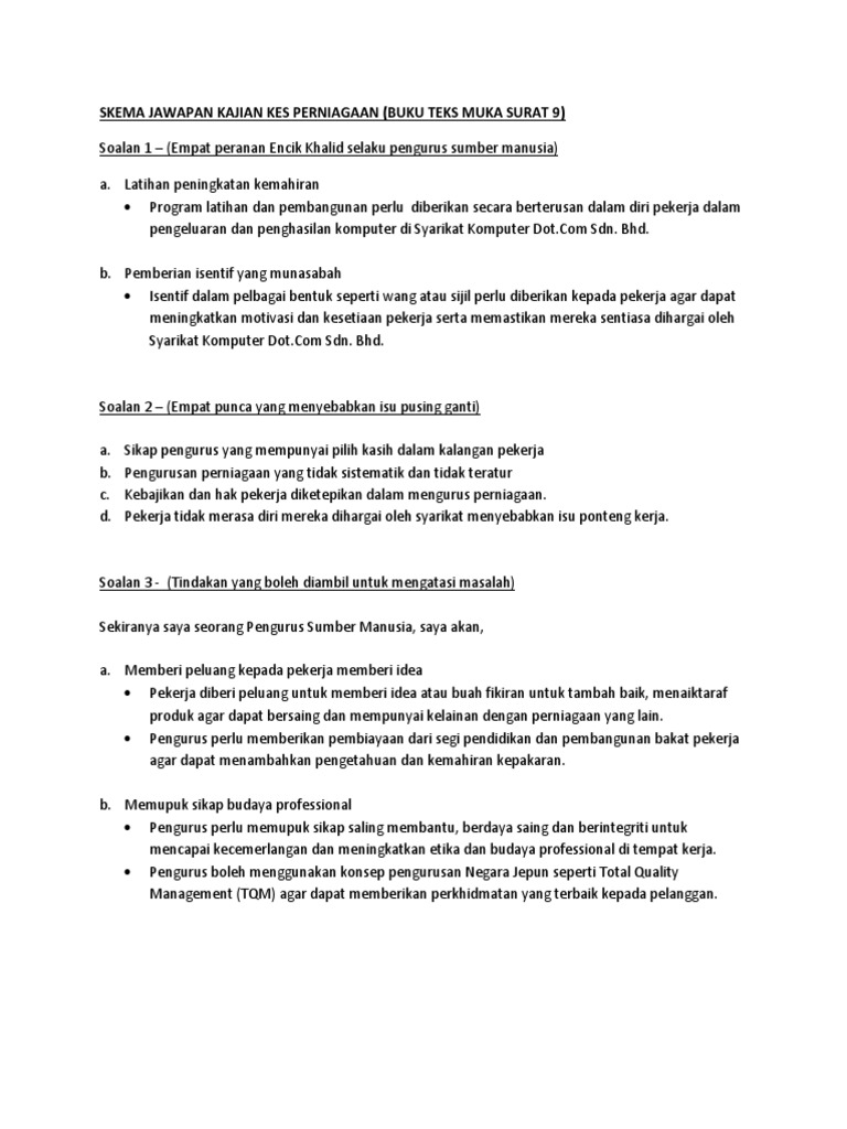 Skema Jawapan Kajian Kes Perniagaan Pdf